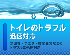 トイレつまりや水漏れなどの水まわりの緊急トラブルにも迅速に対応いたします。