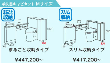 手洗器下にも収納をご用意。頻繁に出し入れするものは、ここに入れれば便利です。※写真はMサイズ